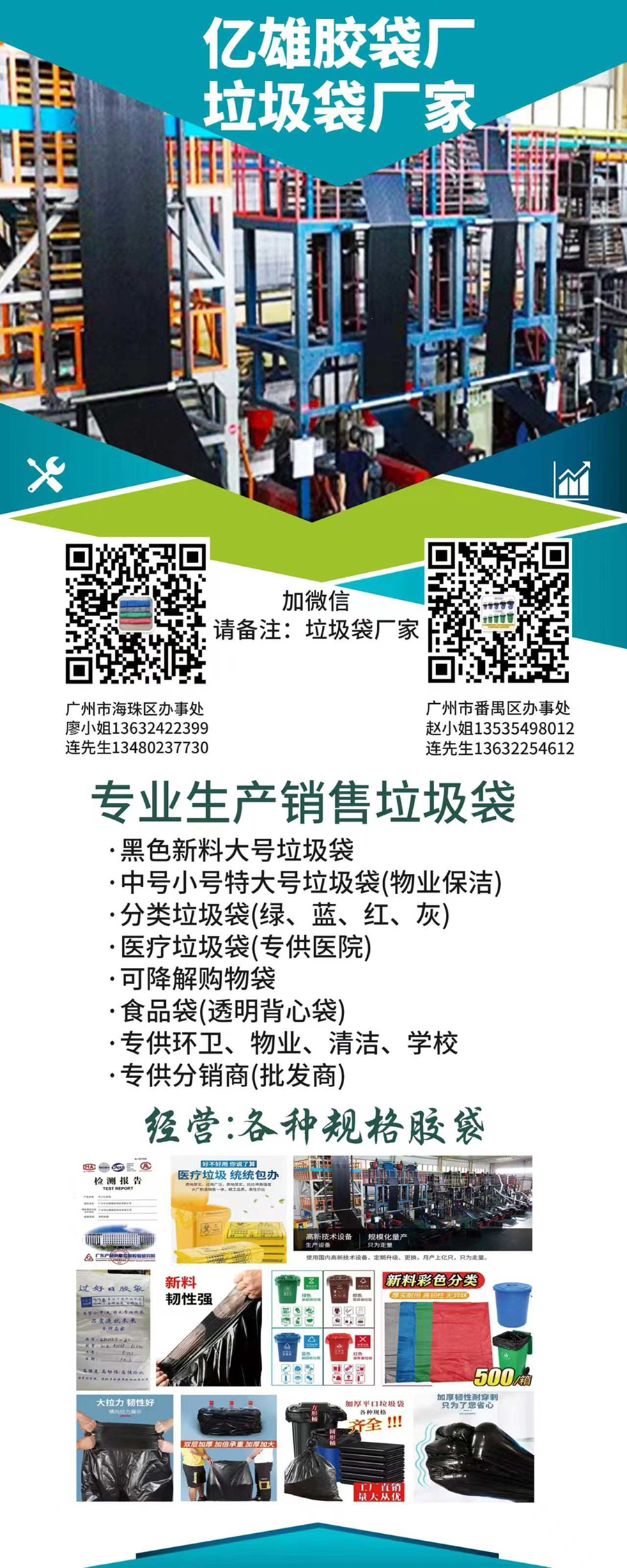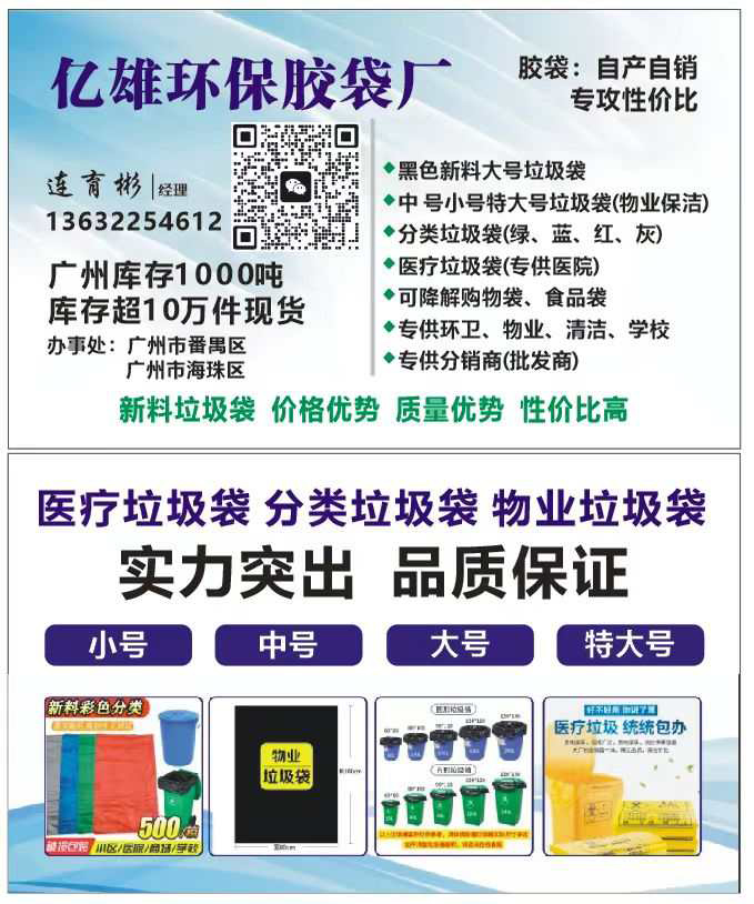 專業(yè)生產(chǎn)大號垃圾袋、特大號垃圾袋、中小號平口垃圾袋等
